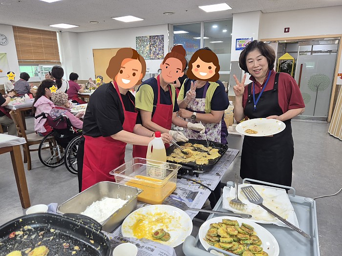건강누리 직원들이 즉석조리 하여 대접해드린 전을