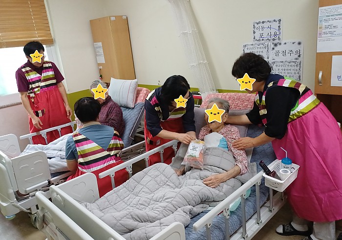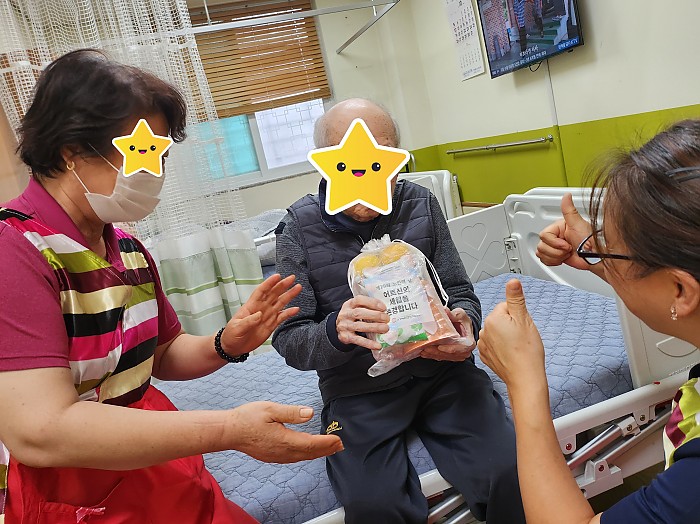 (경관식 어르신은 목도리 선물을 드렸습니다.)