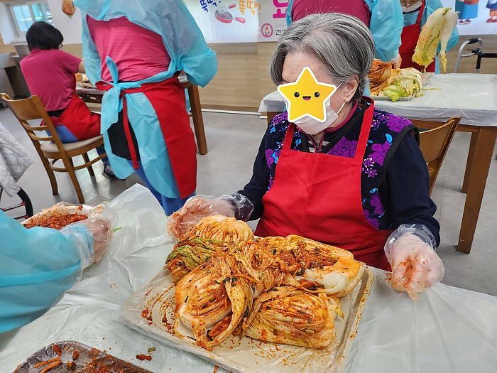 어르신들의 손맛으로 맛있게 만들어주신 김치와 수육도 함께 먹으며