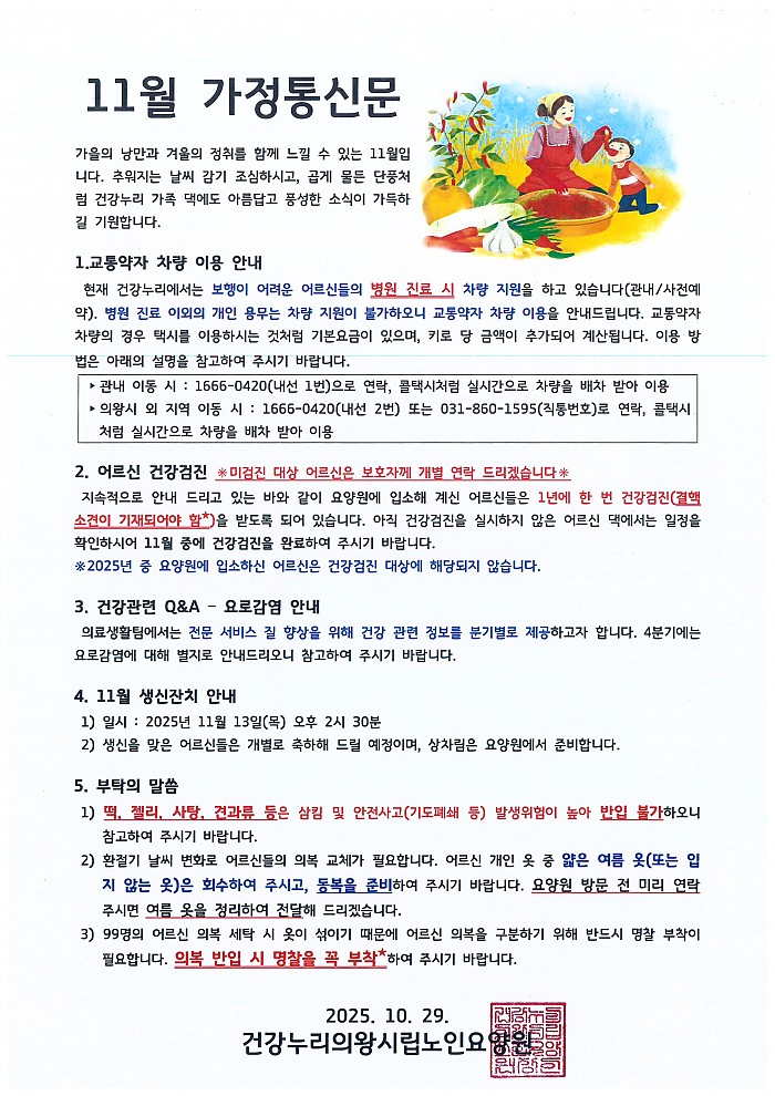 2025년 11월 가정통신문